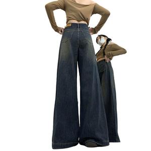 水泥灰阔腿牛仔裤女2025年春秋季高腰垂感显瘦大码宽松直筒拖地裤