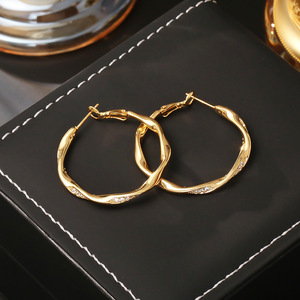 高级感微镶波纹圆圈耳环轻奢简约时尚气质耳饰精致通勤百搭耳圈女