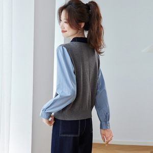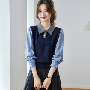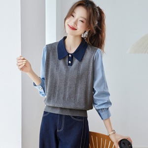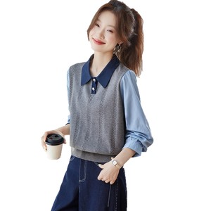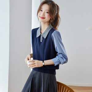 polo领针织衫女毛衣2025秋季内搭宽松打底衫假两件衬衫拼接上衣