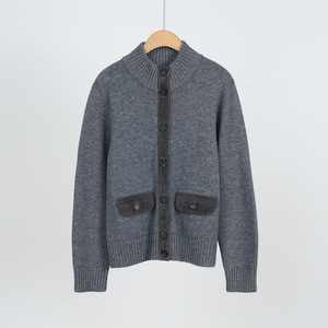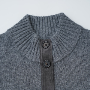 意大利L*P秋柜新 老钱撞色拼接手工车真麂皮立领羊毛羊绒开衫外套
