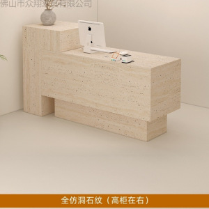 高柜胡桃色+矮柜仿洞石纹 高柜在右