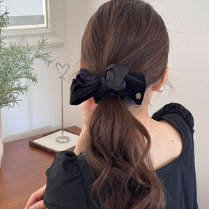 韩国复古小香风少女黑色肠圈丝绒立体百搭大蝴蝶结发圈发绳头饰女
