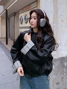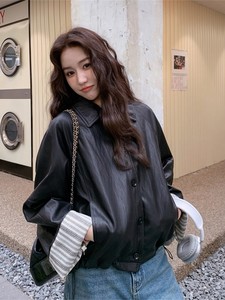 韩系高级感皮衣外套女2025春秋季百搭翻领袖口韩版气质宽松机车服
