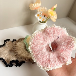手工编织毛线发圈甜美撞色氛围感秋冬新款甜美小仙女马尾发绳发饰