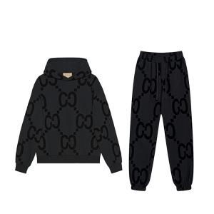 高版本 G家25年秋冬新款LOGO植绒满印休闲男女连帽衫套装卫衣卫裤