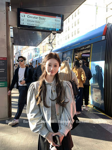 板栗可可Bankelili'英伦都会'chl*e麂皮捏褶立领排扣外套长/短款