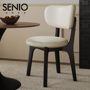 复古实木餐椅家用法式简约现代凳子设计师款白蜡木侘寂风靠背椅子
