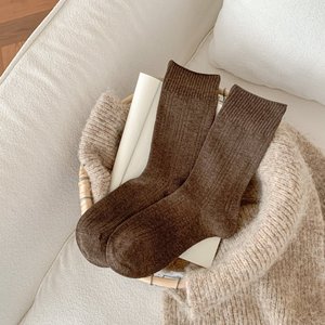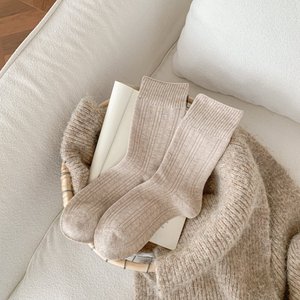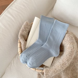 条纹高级感纯色女袜中筒袜简约基础款百搭高罗口防滑不掉跟堆堆袜