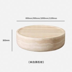 侘寂风洞石茶几客厅家用轻奢现代极简圆形茶几设计师大理石玻璃钢