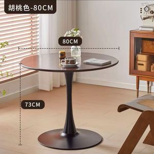 北欧复古郁金香胡桃圆形实木圆桌餐桌家用小户型咖啡阳台轻奢餐桌