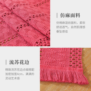跨境节日款桌旗红绿仿麻美式电视柜长条盖巾拼接编织流苏桌旗批发