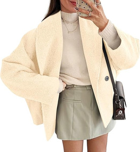 女式短款豌豆大衣超夹克翻领双排扣外套立领秋冬小个子外套高级感
