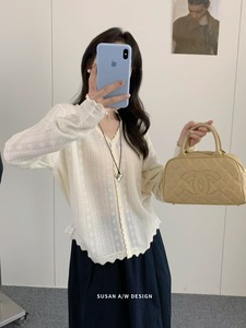 苏珊 2025新款韩系慵懒编织花朵边单排扣V领开衫上衣针织衫26998