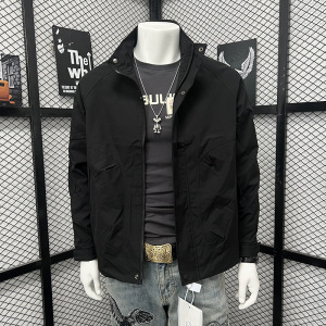 2025高级大口袋立领夹克男春秋季新款休闲上衣服青年男士纯色外套