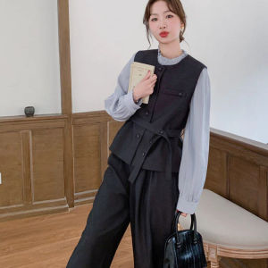 超火收腰马甲阔腿裤套装女春秋三件套韩系超火减龄ootd穿搭设计感
