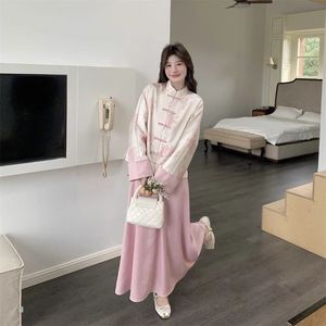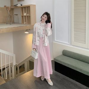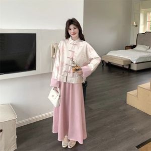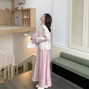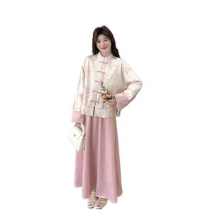 粉色新中式国风盘扣外套半身裙套装女春秋超好看气质高级感流行