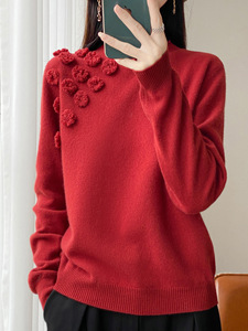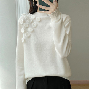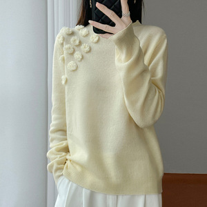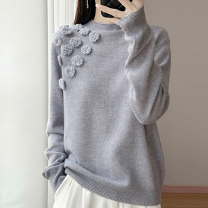 2025秋冬新款小雏菊纯羊毛针织衫女宽松慵懒风套头圆领毛衣上衣潮