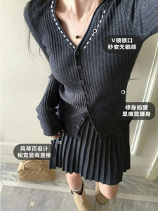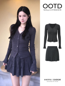 灰色针织百褶裙套装女秋2025新款韩系开衫jk半身裙大方得体一整套