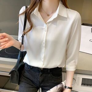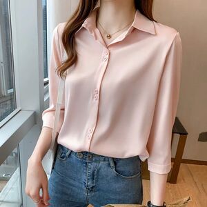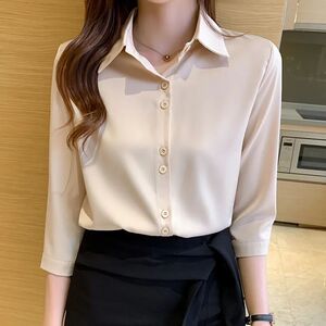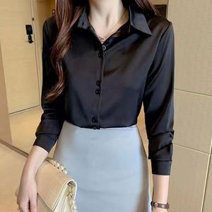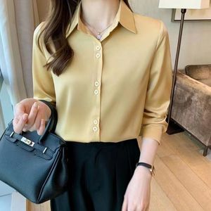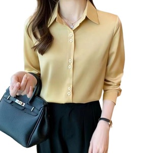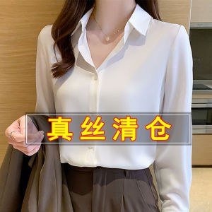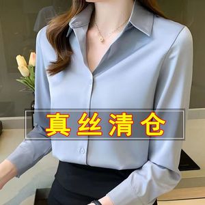 重磅真丝衬衫女长袖春秋新款洋气高端缎面桑蚕丝上衣职业工作衬衣