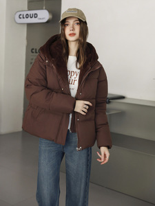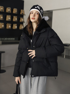 棉服女冬短款连帽2025新款韩版加绒毛拼接面包服加厚假两件潮棉袄