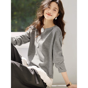 下摆拼接上衣2025秋季新款休闲设计感系木耳边慵懒卫衣女
