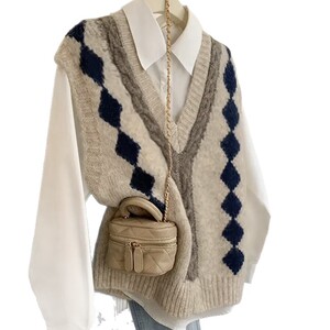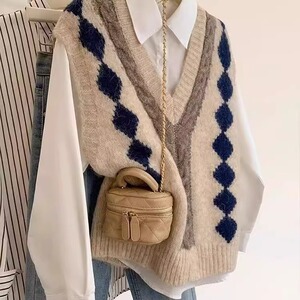 美拉德v领拼色叠穿毛衣背心女2025秋冬季外搭加厚毛线针织马甲女