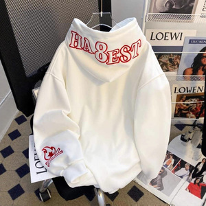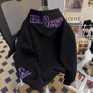 美式高街vibe风刺绣连帽卫衣男女春秋冬薄款加绒加厚潮牌外套上衣