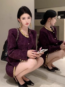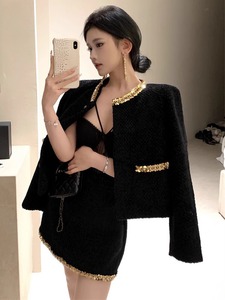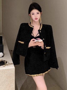 小香风套装2025新款法式富家千金名媛黑色亮片毛呢西装外套女秋冬