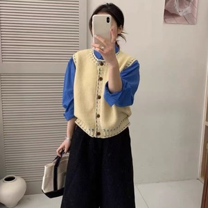 圆领撞色开衫针织马甲女春秋新款时尚休闲学院风减龄背心外套女