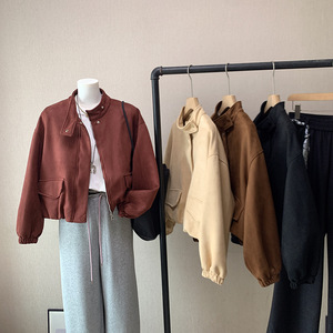 [比正]2025秋冬新款韩版立领防风百搭时尚宽松短款夹克外套女4821