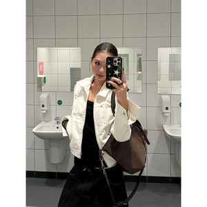 叮叮车蔡蔡家-美式复古柳丁短款夹克高级感翻领休闲辣妹外套女