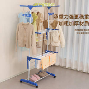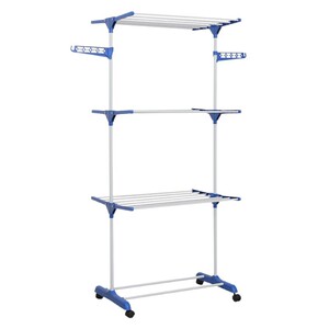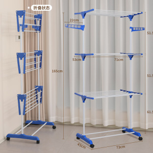 畅销款阳台落地移动翼型可折叠晾衣架多功能收纳三层毛巾架批发