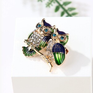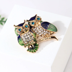 欧美时尚新款气质大气个性创意滴油珐琅树枝猫头鹰胸针高档别针