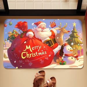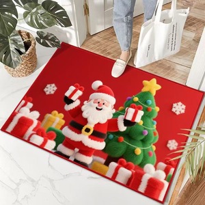 亚马逊圣诞入户门垫红色大门口蹭土地垫水晶绒浴室吸水防滑脚垫子
