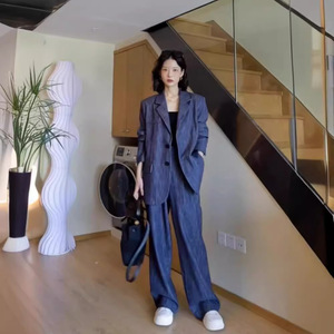 早春穿搭套装年新款女装今年流行漂亮冷淡高级感西装牛仔套装