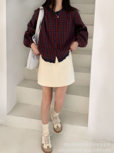 2025新款秋季条纹款木耳边下摆拼接款设计感女装新款衬衫女3006