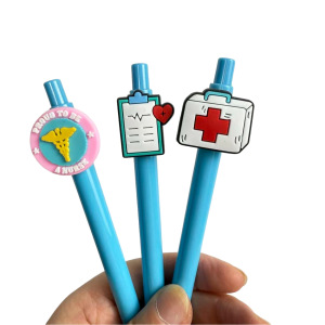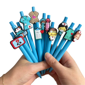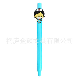 外贸护士笔简约创意纯色糖果色软质卡通圆珠笔黑笔可爱按动笔医生