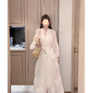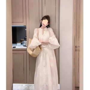 高级感法式刺绣气质连衣裙2025春季新款春夏轻奢长裙宽松裙子女装