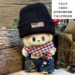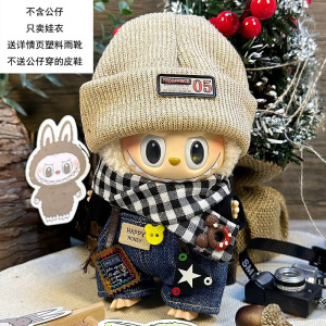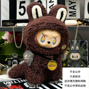 跨境一二三代Labubu拉布布坐坐派对马卡龙17厘米15玩偶娃衣衣服