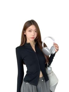 辣妹设计感双拉链立领长袖T恤女秋季小众修身短款上衣内搭打底衫
