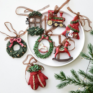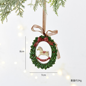 NUCHI跨境圣诞节装饰品复古树脂雪人花环木马铃铛圣诞树装饰挂件
