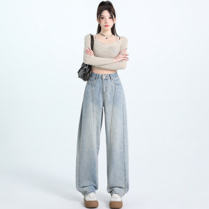 遮胯弯刀牛仔裤女秋2025新款高腰宽松慵懒风显瘦垂感镰刀香蕉阔腿