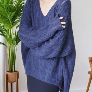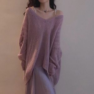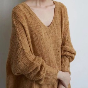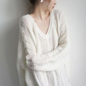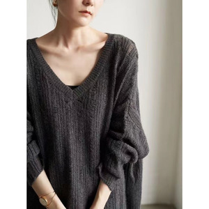 春秋季新款慵懒风针织毛衣女宽松外穿镂空鸡心领休闲显瘦打底衫薄
