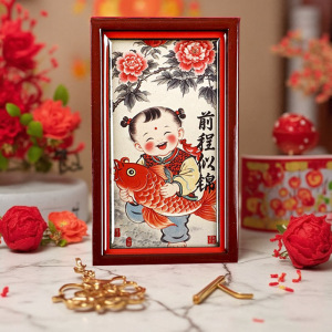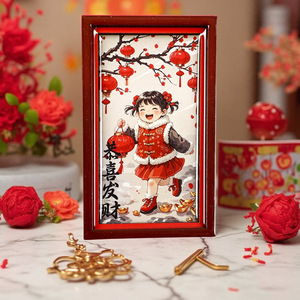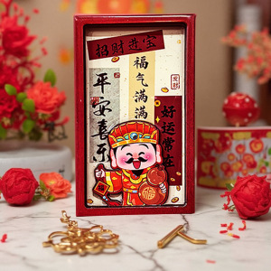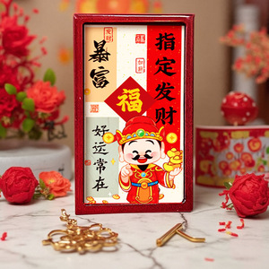 蛇年创意五个财神冰箱贴卡通相框背面磁吸福字喜庆寓意磁力贴