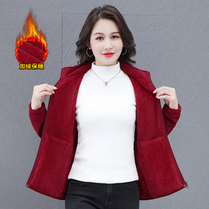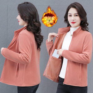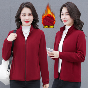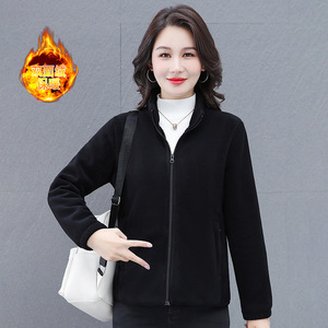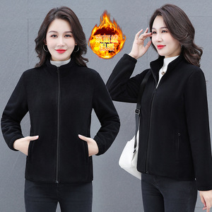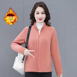 双面绒加绒加厚保暖秋冬夹克外套女中年妈妈绒衫拉链开衫休闲上衣