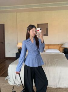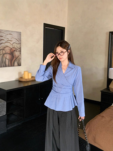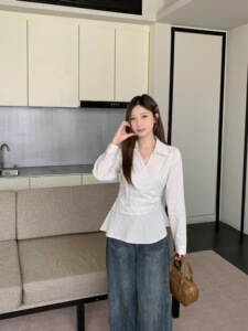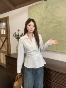 大码胖MM秋季新款韩系侧边纽扣收腰显瘦衬衫条纹上衣