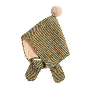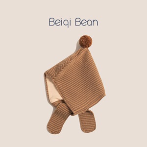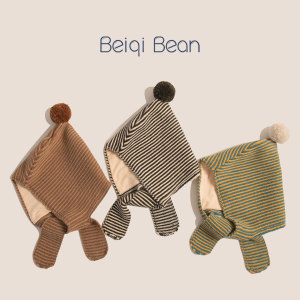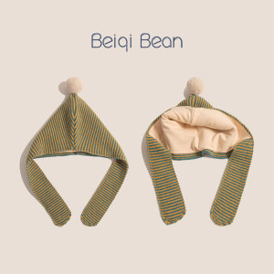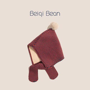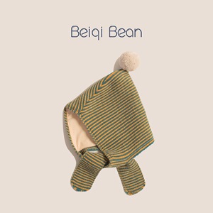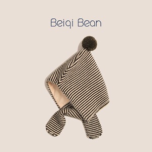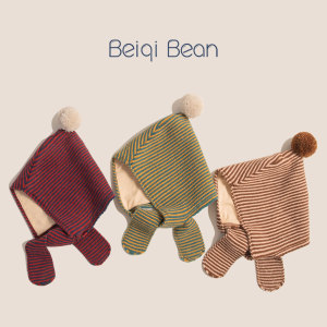 儿童帽子围巾一体秋冬条纹毛球针织帽男女童宝宝护耳帽保暖毛线帽