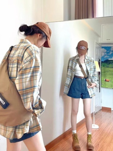 2025格子长袖衬衫日系港风ins宽松衬衣男生夏季潮流百搭休闲外套