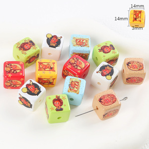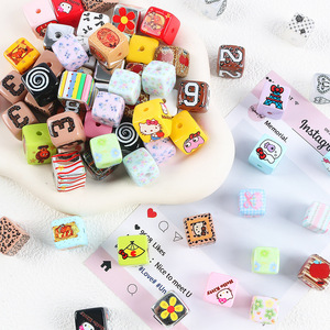 【彩色KT猫】亚克力卡通豹纹数字碎花方块串珠DIY儿童创意盲盒珠