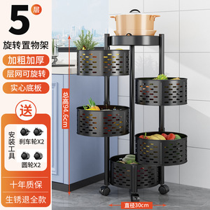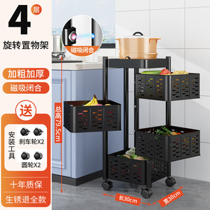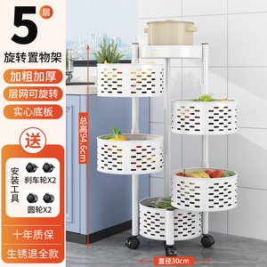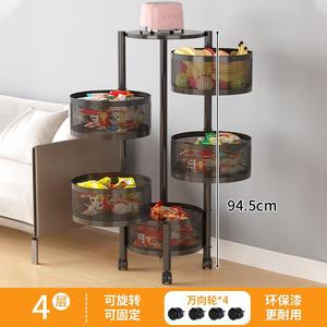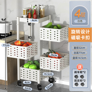 厨房旋转多功能置物落地多层零食小推车带轮水果蔬菜篮零食收纳架